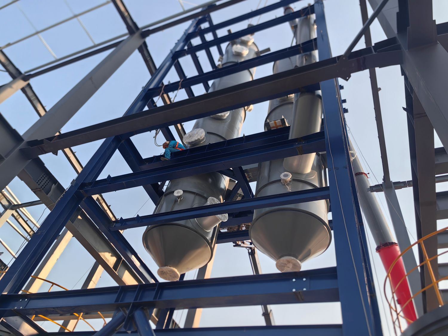 1月23-24日,大连催化剂工程项目部3000吨/年失活催化剂再生装置脱硫系统关键设备T201、T202、T203全部吊装就位。